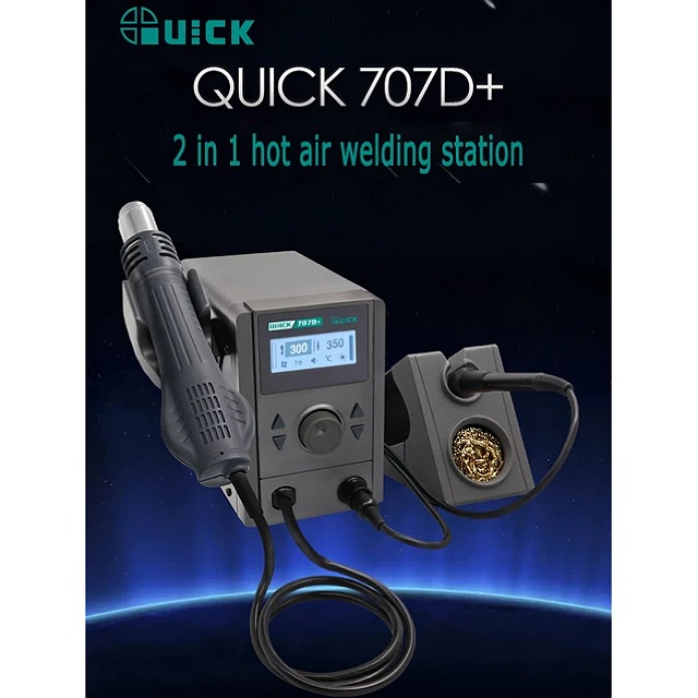 هویه کوییک مدل +Quick 707D، شاهکاری از دنیای لحیم کاری الکترونیکی است که با توان 800 وات و دمای قابل تنظیم بین 100 تا 480 درجه سانتیگراد، همراهی مطمئن و کامل برای هر نوع پروژهای در حوزه الکترونیک و ریپیر میباشد.