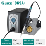 ویژگیهای برجسته شامل وزن سبک برای استفاده آسان، قابلیت تنظیم دما با دقت بالا، و مکانیزمهای حفاظتی برای ایمنی بیشتر میباشند. با +Quick 969A، توانمندی لحیم کاری حرفهای در دستان شماست، که به شما امکان انجام پروژههای با کیفیت و بهرهوری بیشتر را میدهد.